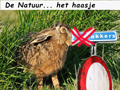 | Streep door Natuur is een protest tegen het natuurbeleid van het kabinet Rutte. De buitenproportionele bezuinigingen op natuur, de absurde natuurwet die in de maak is en het schrappen van Nationale Landschappen en Nationale Parken laten zien dat er in Den Haag niet meer wordt nagedacht. Natuur is kostbaar en het bewaren waard. Maar staatssecretaris Bleker streept het ene na het andere stuk natuur weg. De natuur is bij Bleker het haasje! |