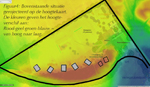 | Thuis bekijken we nogmaals de situatie op plattegrond en hoogtekaart. Dat maakt duidelijk dat het geen optie is om de huizen alsonog aan de kant van de verhoogde boswal te plaatsen. Zelfs als ze wat verder naar achteren gezet worden, blijven ze het landschapsbeeld verstoren. We houden dus vast aan ons aanvankelijke voorstel en doen alleen enkele suggesties over een andere indeling, die de privacy van het woonhuis kan vergroten. De tekeningen zullen sowieso nader uitgewerkt moeten worden, want op de huidige schetsen blijken de te bouwen huisjes gedeeltijk in het ven geprojecteerd te zijn, wanneer je de google-kaart er onder legt. | |||